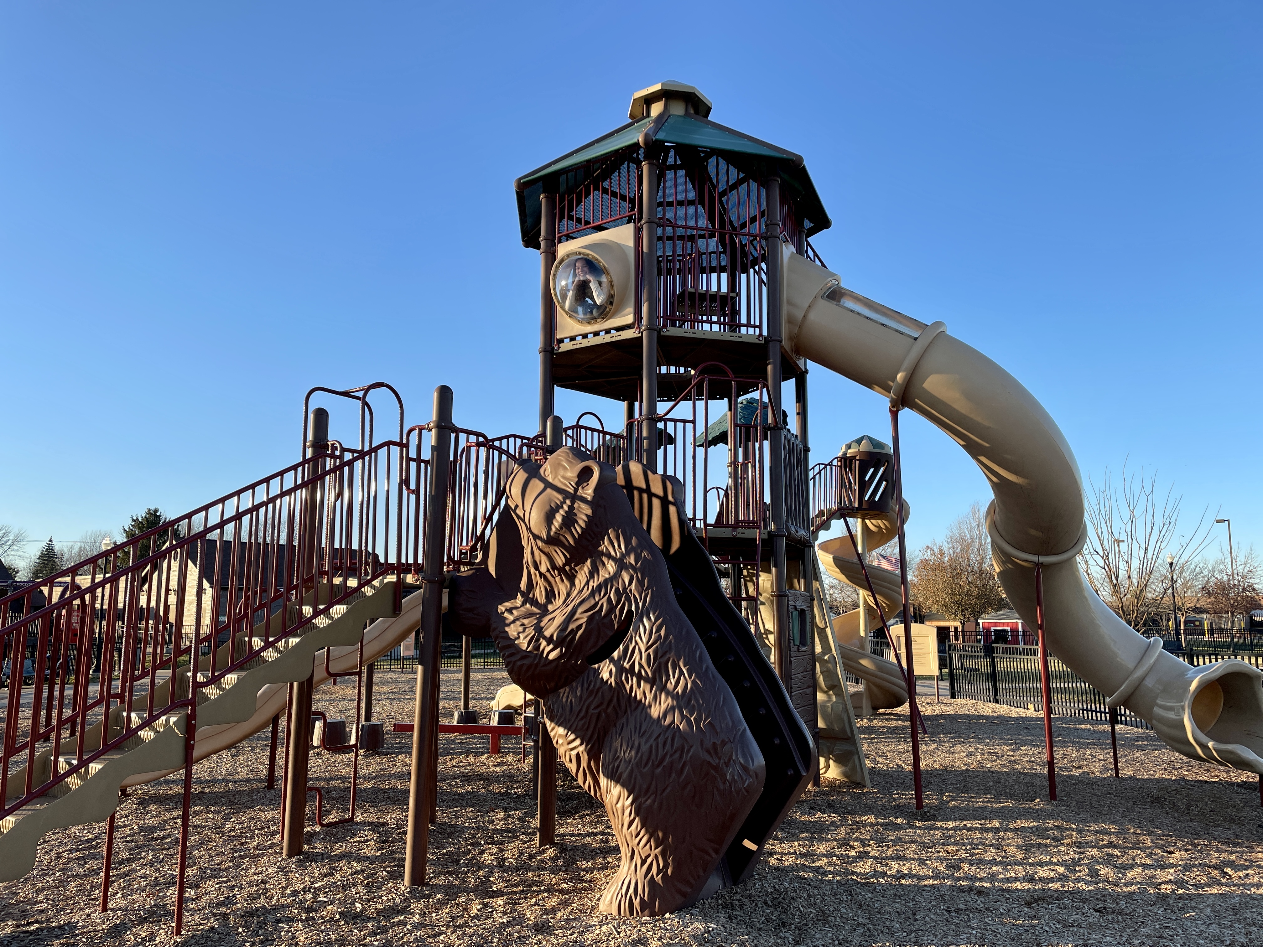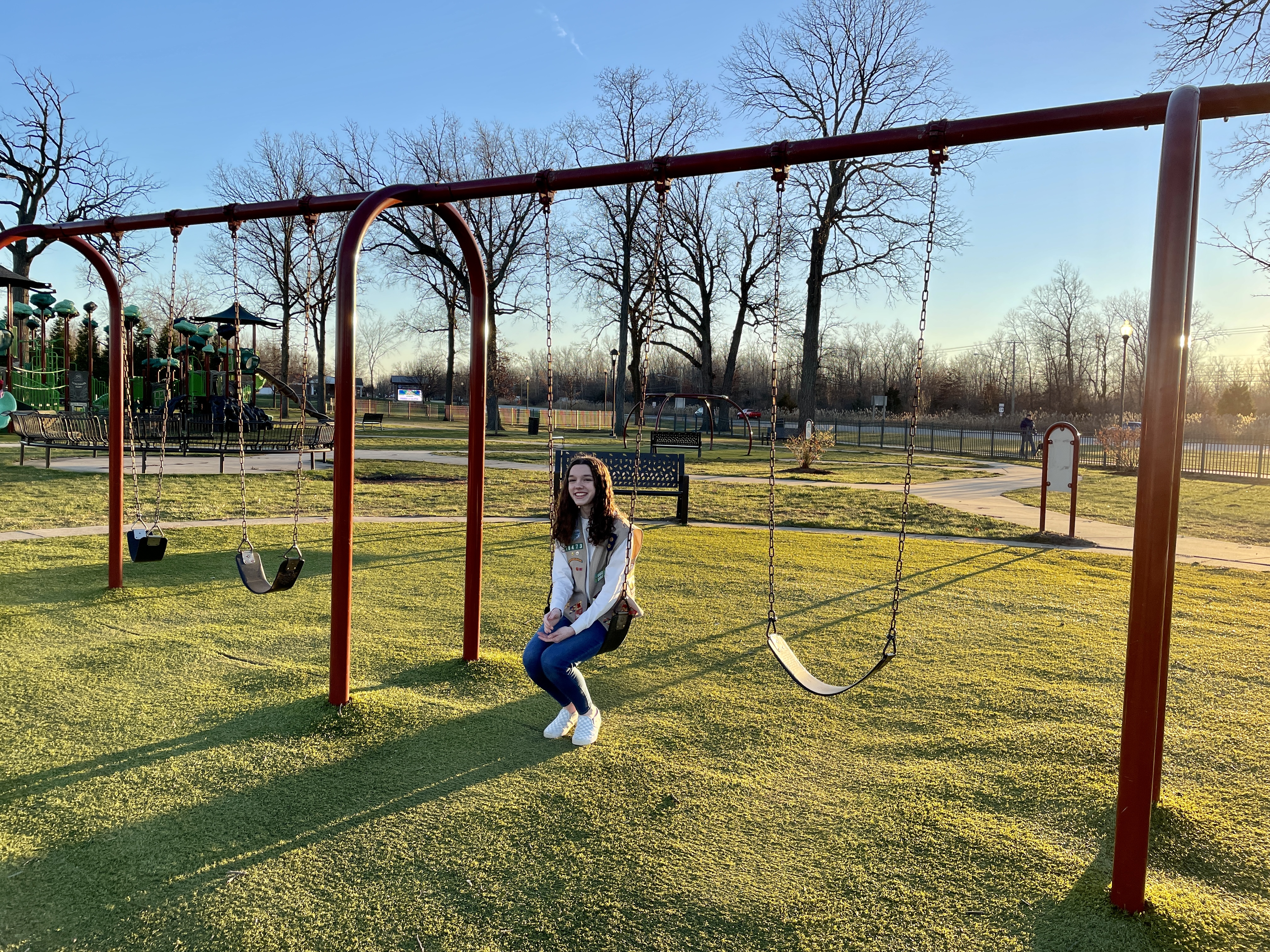 "My autistic son loved the harness swing, he also loved watching the dogs play while playing on the swing, great park choice to include the swings with the dog park."